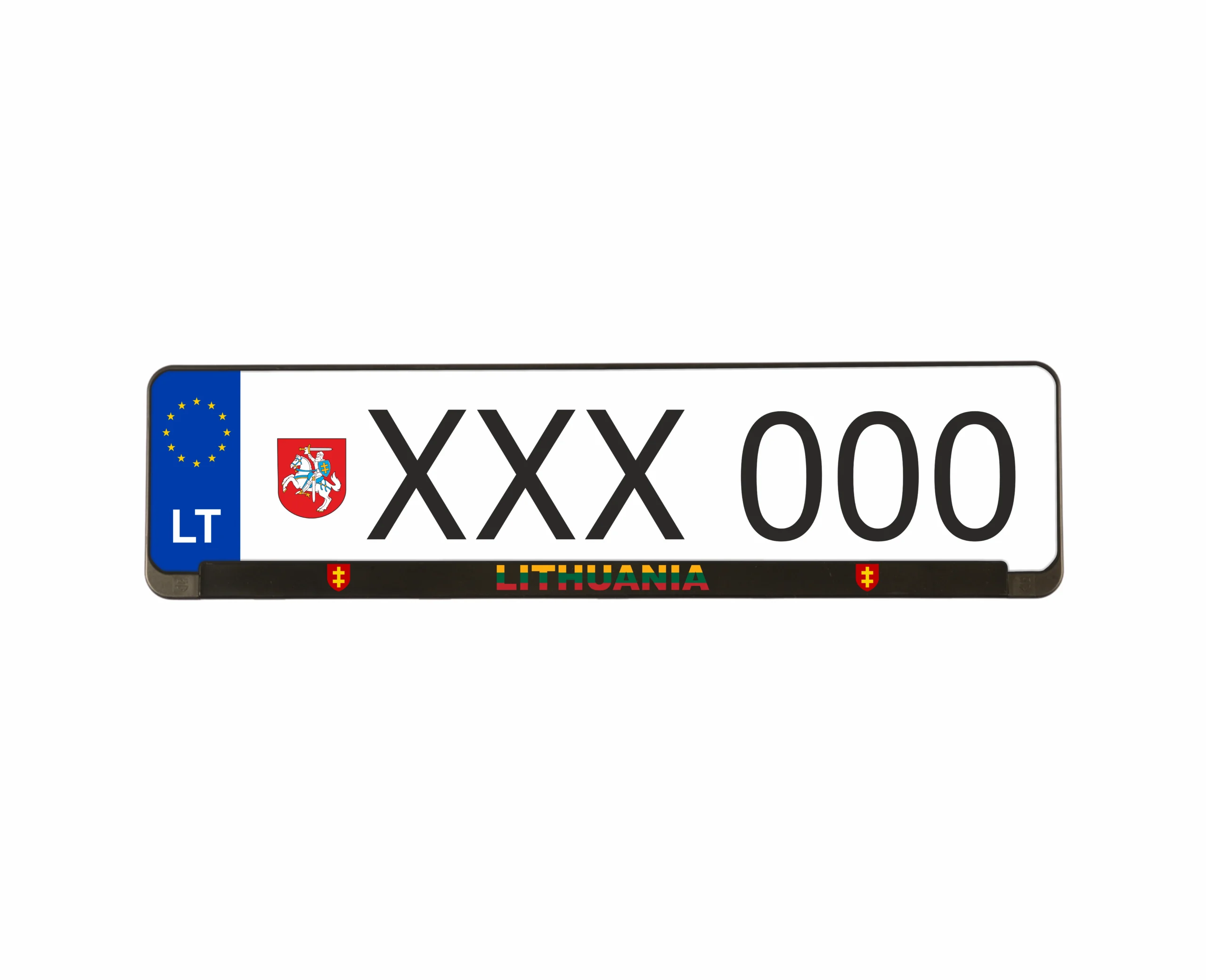 Wurth numerių rėmeliai – Lithuania ir dvigubu kryžiumi. Pagaminta Europos Sąjungoje. 1 vienetas – 1 numerio rėmelis.